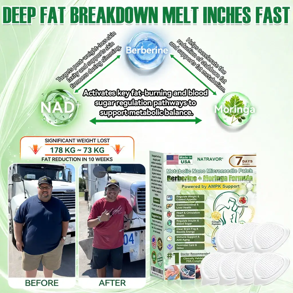 In clinical studies, users taking NATRAVOR® 𝑴𝒆𝒕𝒂𝒃𝒐𝒍𝒊𝒄 𝑵𝒂𝒏𝒐 𝑴𝒊𝒄𝒓𝒐𝒏𝒆𝒆𝒅𝒍𝒆 𝑷𝒂𝒕𝒄𝒉 achieved breakthrough results—some dropping 6-8 pounds of stubborn fat in just one week. One patch per day targets the most resistant visceral and abdominal fat, sculpting a leaner physique without grueling high-intensity workouts. This isn’t just weight loss—it’s precision fat elimination that reshapes your body from the inside out. The data speaks for itself: real users, real results, zero crash dieting required.