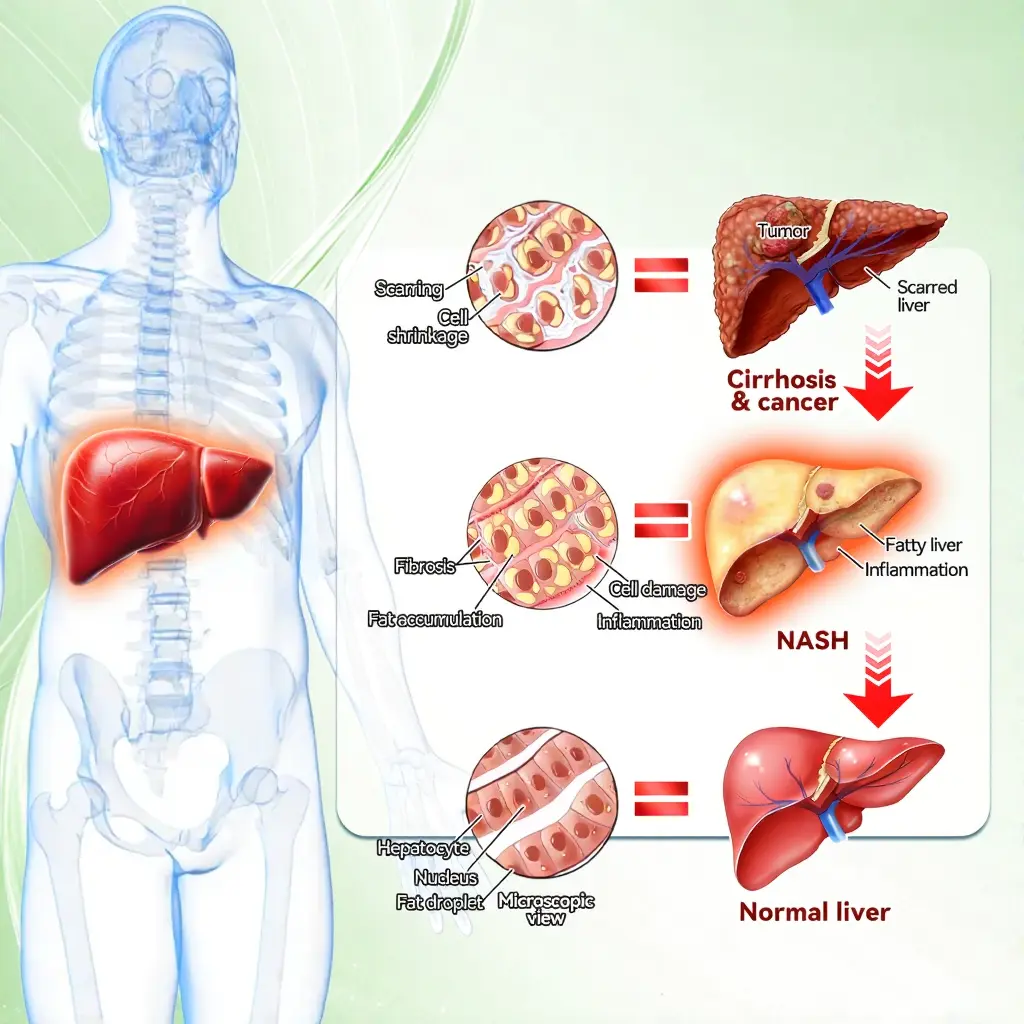- Fatty liver: Can lead to fatty liver disease, which may progress to liver dysfunction, cirrhosis, or require liver transplant.