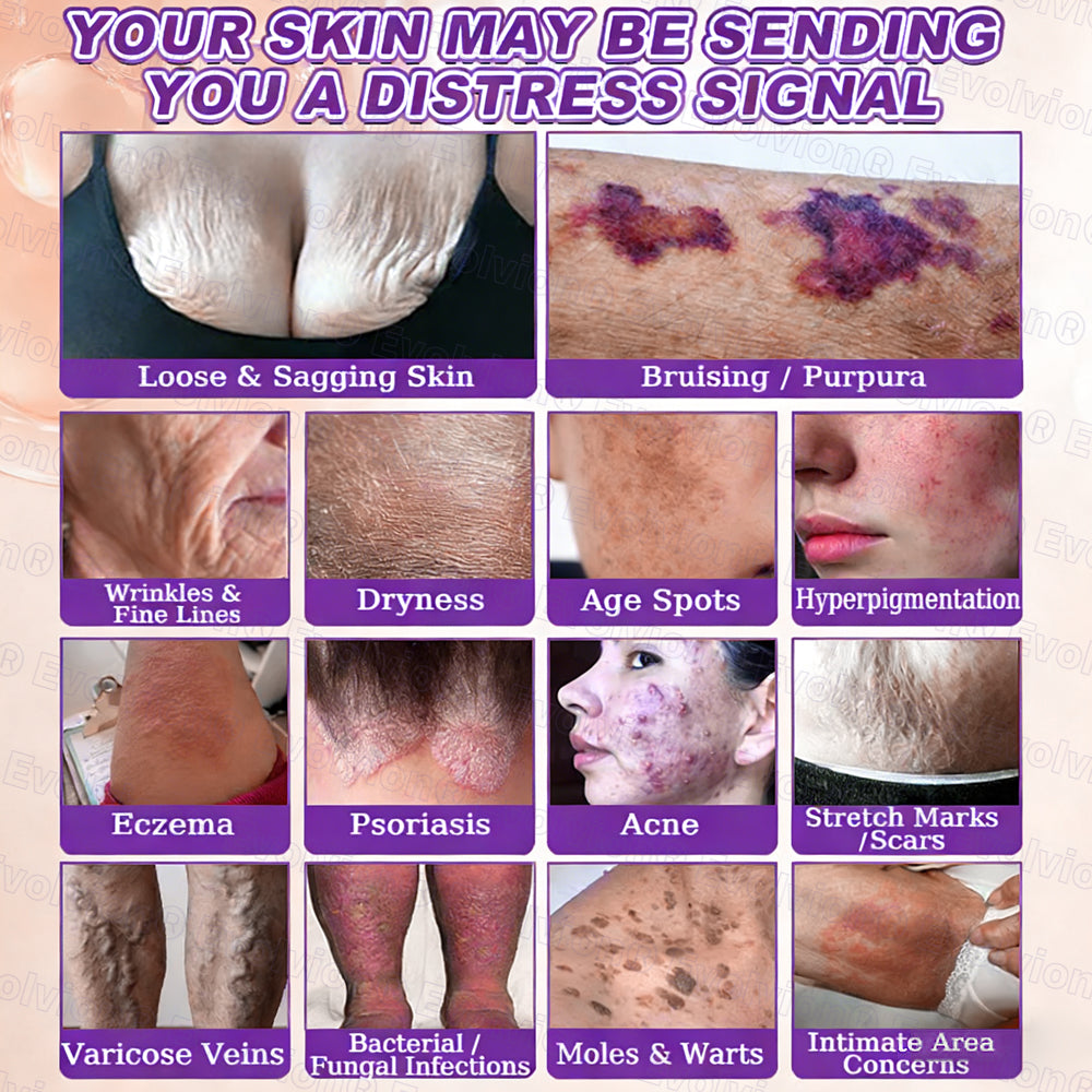 From birth to old age, our skin faces different changes and challenges at every stage of life: scars and acne inflammation, breast sagging and loss of firmness, purpura and pigmentation, dryness and sensitivity, the growth of moles, warts, and skin tags, inflammatory conditions such as psoriasis and eczema, fungal and bacterial infections, and even intimate-area irritation and itching. These concerns persist throughout a lifetime — yet for decades, there has been no truly comprehensive, safe, and effective solution.