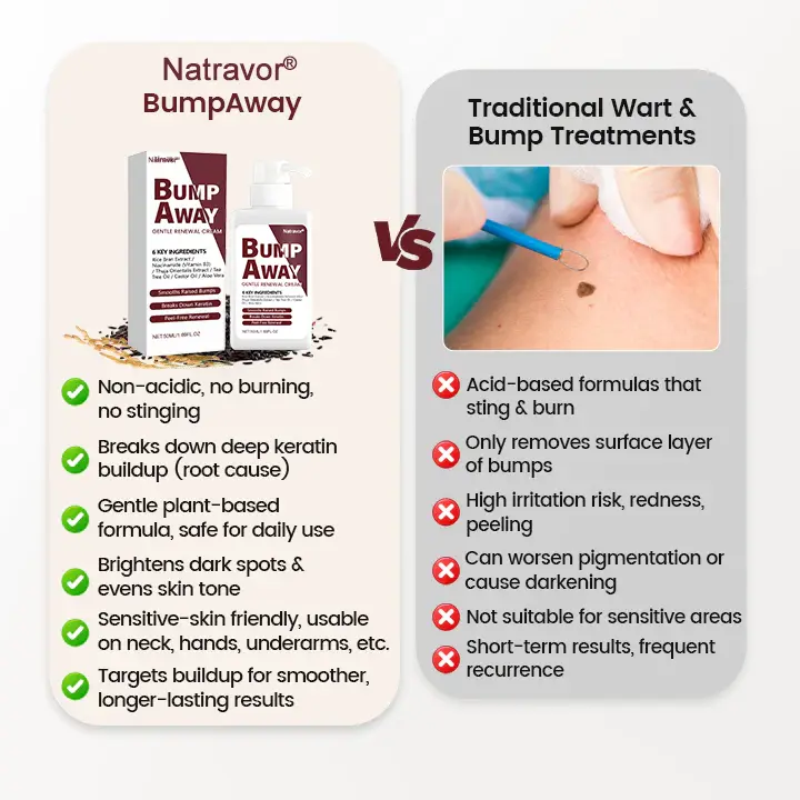 Most bump and wart treatments fail because they only work on the surface. Acids burn, peels irritate, OTC removers lift only the top layer,and moisturizers cannot dissolve hardened keratin — so bumps return.