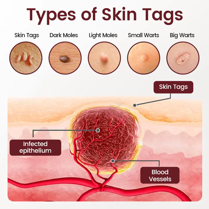 Skin tags, warts, small bumps, and rough patches often form when the skin experiences: