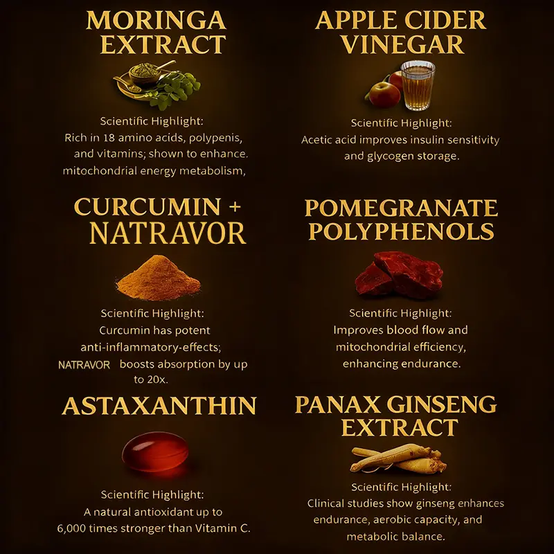 Moringa Extract — Rich in amino acids and polyphenols, supports energy metabolism and muscle growth