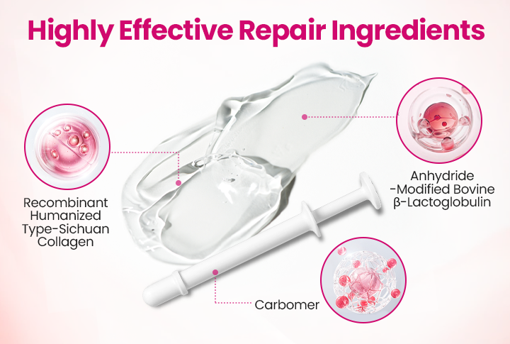 - Recombinant Humanized Type-Sichuan Collagen:This bioengineered collagen offers excellent biocompatibility and moisture retention. It promotes the regeneration of cervical and vaginal epithelial cells, accelerates the healing of microlesions, and strengthens the local mucosal barrier—contributing to long-term intimate health and physiological balance.