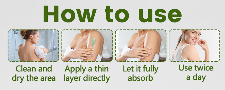 It is suitable for many common areas such as the neck, underarms, chest, arms, hands, and body folds. Avoid using it on broken, inflamed, or actively bleeding skin, and do not apply directly near the eyes or inside mucous membranes.