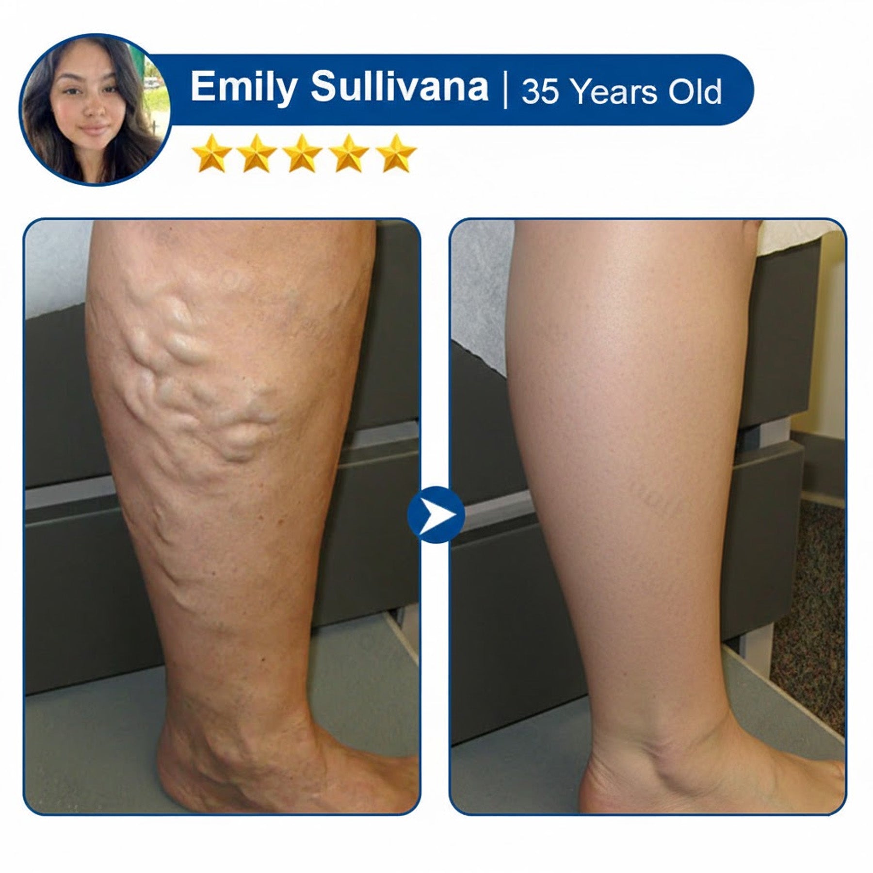 ✓ 92% reduction in visible varicose veins and leg fatigue within 14 days