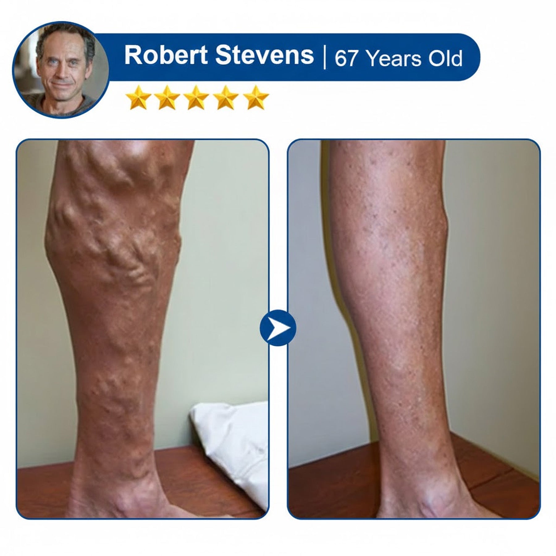 “I’m 67 and thought it was too late for me. My varicose veins were so severe that walking became painful. My daughter ordered NATRAVOR® for me, and I’m amazed at the results. The patches are so easy to use – just apply and sleep. After 6 weeks, the improvement is remarkable. I can walk my dog again without pain!“——Robert Stevens, Retired, 67, Chicago⭐⭐⭐⭐⭐