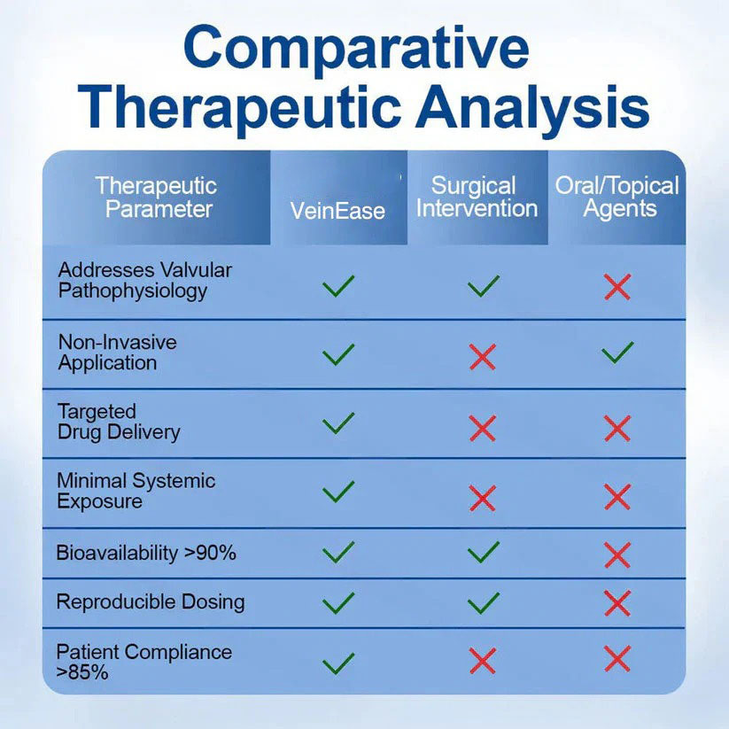NATRAVOR® VeinEase represents the first commercially available transdermal phytotherapy system specifically designed to address venous valvular insufficiency through localized botanical intervention. Unlike systemic treatments that dilute active compounds throughout the circulatory system or topical applications that cannot penetrate the dermal barrier, our microneedle delivery system ensures concentrated therapeutic compounds reach the target tissue with minimal systemic exposure.