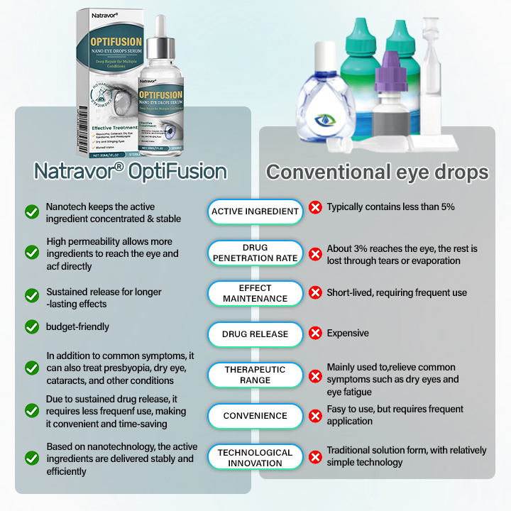Developed by a team of visual science experts, Natravor® OptiFusion Nano Eye Drops Serum uses advanced nano-penetration technology to precisely deliver core nutrients to the eye’s lens, supporting focus adjustment, improving clarity, and restoring overall eye health.