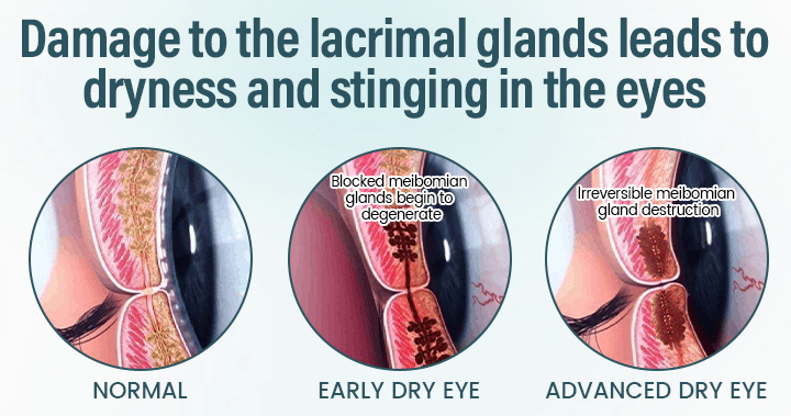 Dry Eye Syndrome: An unstable tear film causes dryness, stinging, burning sensations, and even light sensitivity or excessive tearing.